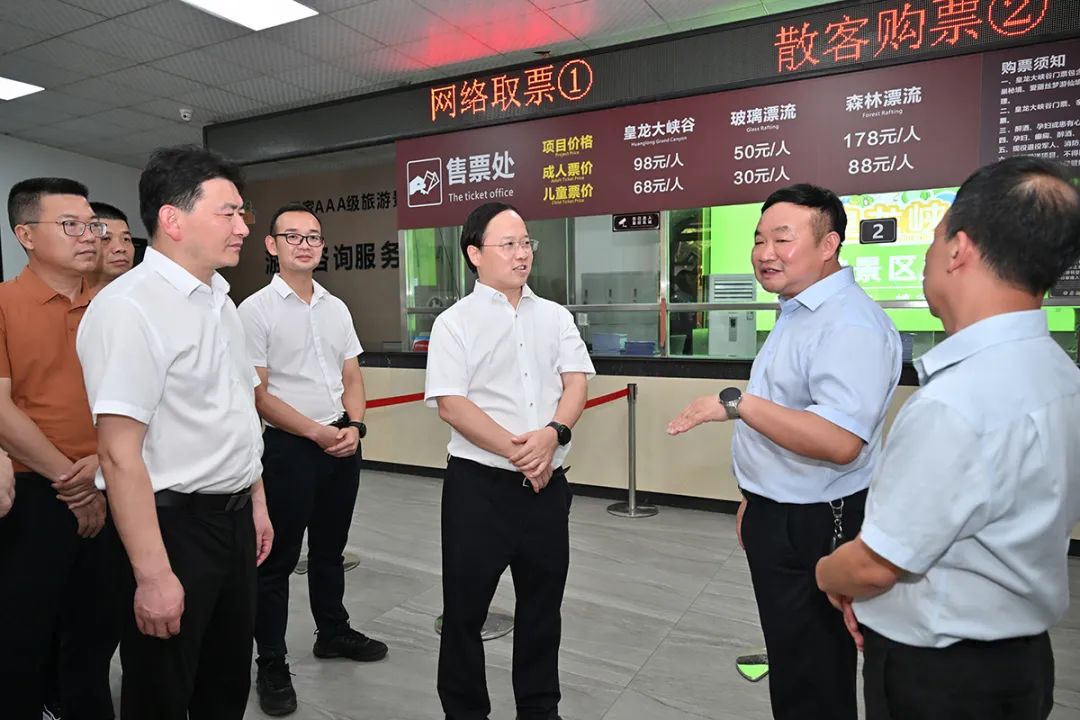肖正波在皇龙峡景区详细了解景区运营、安全管理等情况。