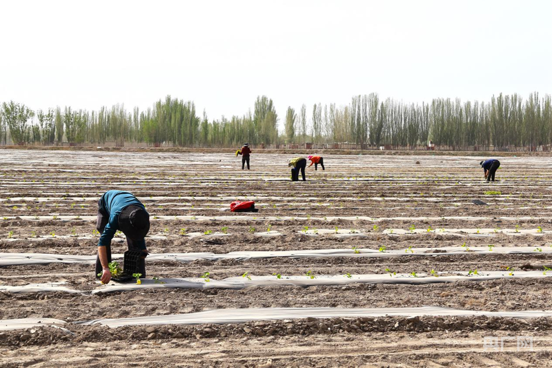 在塔孜洪乡贝贝南瓜种植基地,村民们正抢抓晴好天气,进行贝贝南瓜幼苗移栽定植作业,村民有序完成地膜打孔、幼苗移栽等工序,为今年的丰产增收播下希望的种子。