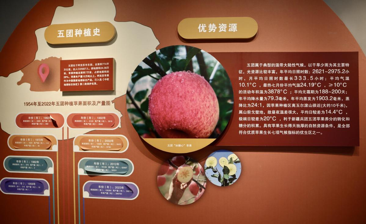在五团军垦纪念馆(苹果文化馆),记者深入了解了苹果在当地的历史渊源与文化传承。馆内系统展示了苹果的生长特性、种植技术及品种演变,生动记录了兵团人从荒漠开垦到现代化果园的奋斗历程。作为集科普、历史、文化于一体的特色展馆,这里不仅是苹果产业发展的见证,更成为弘扬兵团精神和农业现代化成果的重要窗口。