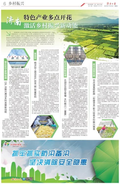 在国家深入实施乡村振兴战略、加快建设农业强国的宏伟蓝图下,济南市精准发力,以产业兴旺为核心引擎,全域推进乡村产业、人才、文化、生态、组织“五大振兴”,绘就了一幅幅充满活力的泉城乡村新画卷。起步区孙耿街道油莎豆零嘌呤啤酒项目与艾草锤加工“大小产业”并举,科技赋能与家门口就业并重;章丘区宁家埠街道聚力工业集群升级与农业“三产融合”,“铜铝铸造之乡”换新颜,“吨粮乡”迈向“高质田”;莱芜区依托“姜蒜之乡”优势,深耕农产品精深加工,75家规上企业带动全链条升级,让“土特产”畅销全球;商河县贾庄镇巧用衔接资金,温室花卉产业绽放“美丽经济”,成为集体增收、村民致富的“金钥匙”。济南正以扎实行动,在广袤田野上奋力书写农业强、农村美、农民富的时代答卷。