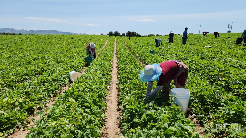 产业的发展,也为周边农民带来增收。随着大量香瓜成熟,李树清每天都需要10名左右的采摘工人。莫日古其格村的陈国堂就是其中之一,他受雇来到李树清的地里采摘香瓜,每天能收入近200元,不到一个月的采摘季收入超5000元。