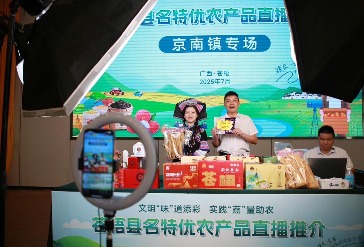苍梧县文化中心内的“镇长直播间”,各镇镇长轮番上阵,化身“名特优农产品代言人”。沙头镇镇长莫江华在镜头前熟练地展示荔枝品种、讲解吃法、推介荔枝烧鸡,直播间峰值在线人数突破5万,带动沙头镇荔枝单品线上销售额单日破百万。据统计,活动期间通过淘宝、抖音、微信小程序等平台销售的苍梧沙头迟熟荔枝占比高达总销量的35%,比去年同期提升12个百分点。
