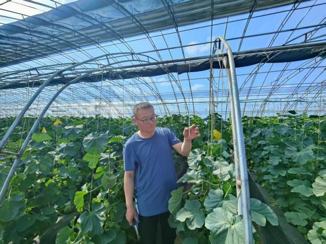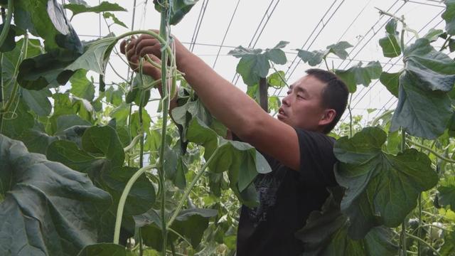 走进草垛山村民小组的温室大棚,绿意盎然,生机勃发。芝麻香瓜藤蔓上,一颗颗果实长势喜人,棚内温润的空气里弥漫着清甜气息。种植户白丕清正穿梭于整齐排列的植株间,摘除杂叶。“从每年3月份开始种植香瓜,每天观察大棚里的温度、苗子生长情况,保证它的成活率。这些香瓜在五月中旬大量上市,一棚收入大概就是五至六万左右。”店塔镇店塔村草垛山大棚种植户白丕清说。