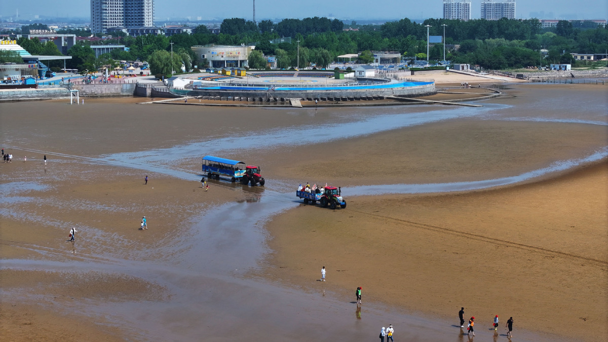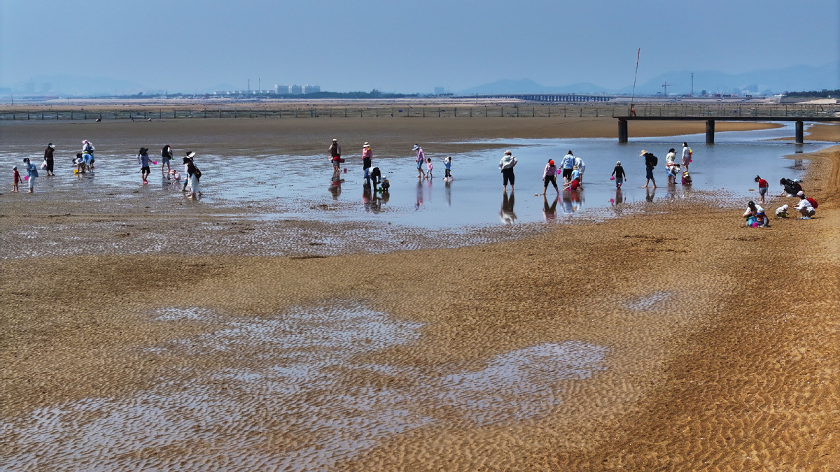 5月24日,在山东省日照市东港区刘家湾赶海园,游客手持铲子和塑料桶,在滩涂捕捉蛤蜊、蛏子。刘家湾赶海园总规划面积5.15平方公里,拥有5.4公里长的黄金海岸线,是集旅游观光、休闲度假、滩涂赶海、海上游乐为一体的多功能综合型国家4a级旅游景区。刘家湾赶海园围绕“吃、住、行、游、购、娱”旅游六要素,重点打造儿童体验区、艺术海岸带、星光营地、赶海牧场和滩涂活动区五大功能区。2025年“五一”假期期间,刘家湾赶海园接待游客9.7万人次,同比增长54%。