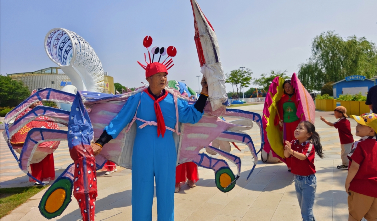 海洋的“大螃蟹”吸引了小朋友