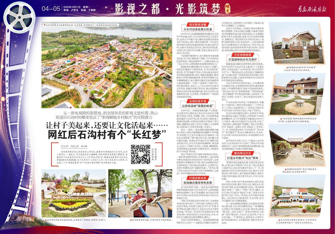 同时,村里计划与周边的杨家山里片区其他村庄联动发展,整合“红色文化、绿色生态、影视文旅”资源,打造全域旅游示范区。“我们希望通过‘影视 ’‘文旅 ’‘科普 ’的多元融合,让后石沟村不仅成为‘网红打卡地’,更成为乡村振兴的‘长红’样本。”刘芳说,在乡村振兴的道路上,后石沟村正以影视为笔、生态为墨,奋力书写着属于自己的精彩篇章。