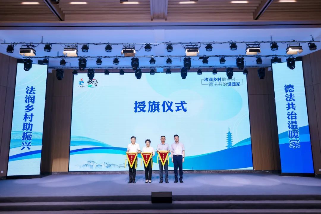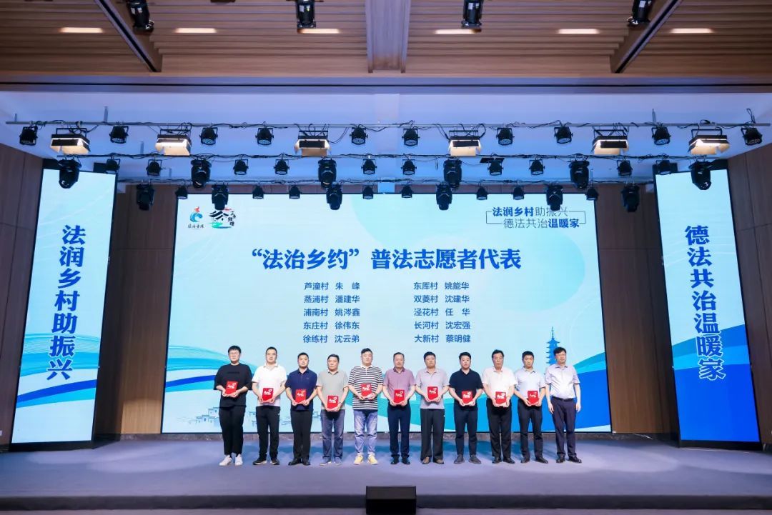 现场举行了普法示范村授旗仪式,区司法局党委书记许峰向东庄村、东厍村、徐练村等村颁发流动红旗。练塘镇党委副书记、镇长高峰为普法志愿者授予证书,他们将深入田间地头开展“移动式”法律服务。