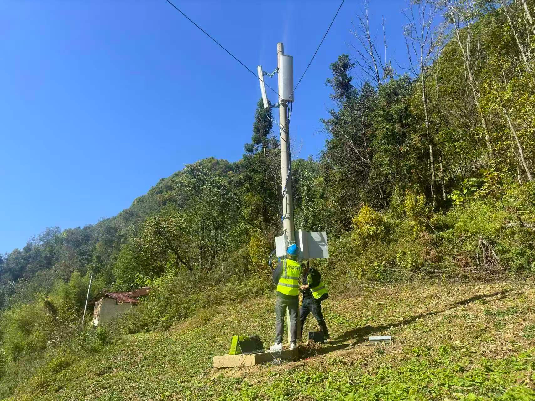 移动工作人员为双河口镇建设扶贫基站(中国移动陕西分公司供图)