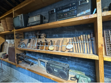 在岚皋县图书馆馆长段祖琼的讲解下,实践队师生深入了解了这座记录巴山文化的乡愁馆。展馆设有“小村大事”“地域文化”“名人名门”“巴山农家”四大展区,通过泛黄的家书、斑驳的农具、生动的老照片等200余件展品,生动展现了岚皋百姓生活的历史变迁。其中,“巴山农家”展区还原的改革开放初期农家生活场景,让队员们直观感受到传统农耕文明的魅力。